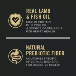 - Real lamb is the first ingredient, providing high-quality protein for strong muscles.