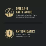 - Formulated with omega-6 fatty acids and vitamin A to nourish skin and promote a healthy, shiny coat.